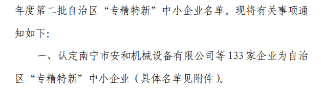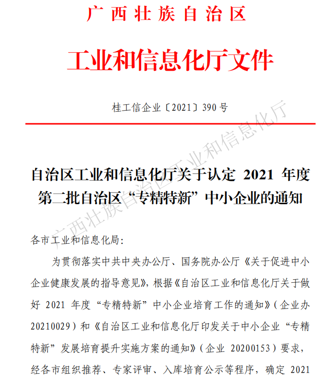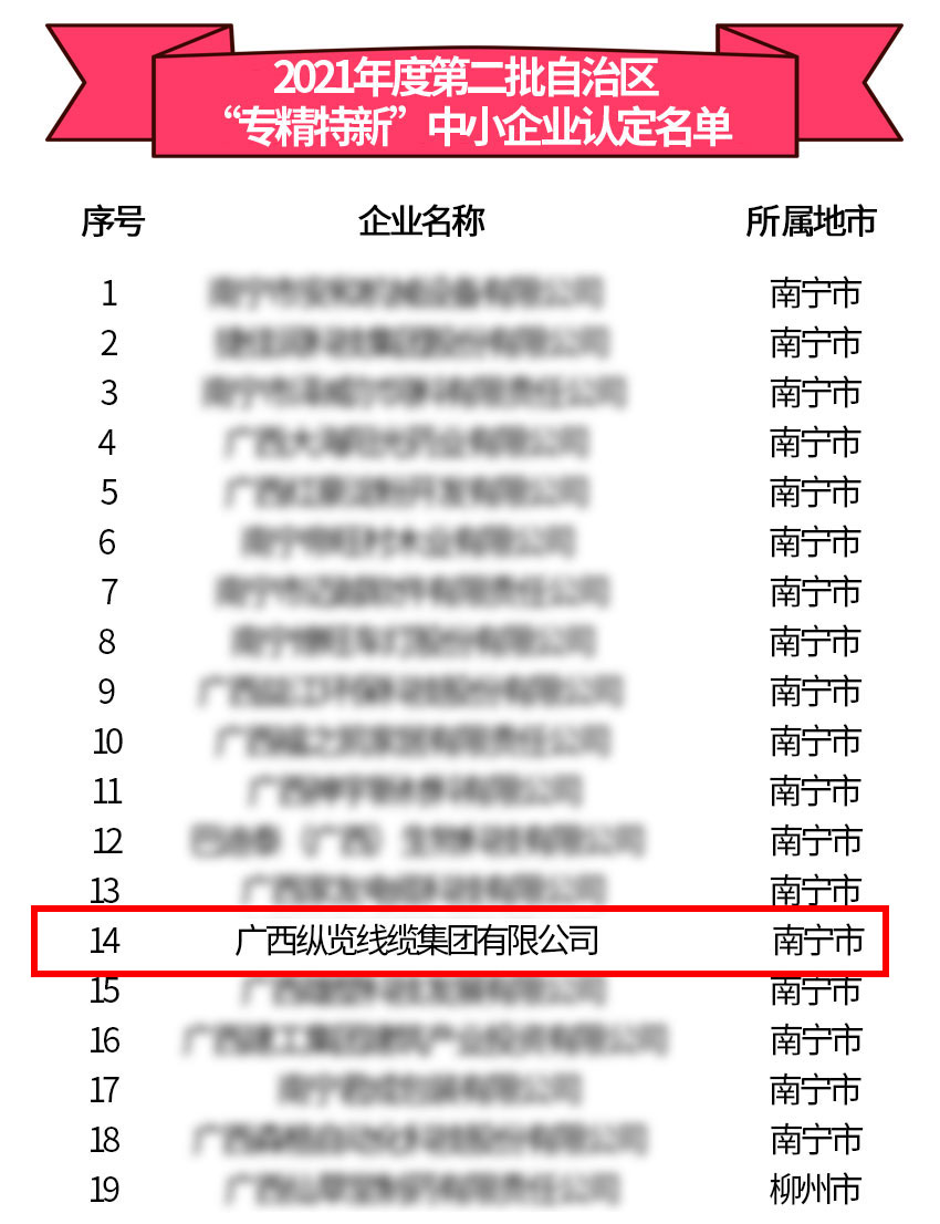 日前,廣西工信廳發(fā)布了2021年度第二批自治區(qū)“專精特新”企業(yè)認定名單,我司榜上有名。 我司自成立以來,高度重視產(chǎn)品開發(fā)、技術(shù)創(chuàng)新、科研投入、人才建設(shè)工作,為公司持續(xù)健康、高質(zhì)量發(fā)展奠定了堅實基礎(chǔ)。已建設(shè)成為集電線電纜上下游產(chǎn)品研發(fā)、生產(chǎn)、銷售為一體的國家級高新技術(shù)企業(yè),廣西最大的電纜生產(chǎn)基地和中高壓導(dǎo)線生產(chǎn)基地,廣西智能制造示范企業(yè),廣西機械工業(yè)行業(yè)10強企業(yè)、廣西技術(shù)創(chuàng)新示范企業(yè)。在廣西線纜行業(yè)中,是唯一榮獲“全國工業(yè)品牌培育示范企業(yè)”,唯一建立有國家CNSA認可實驗室的企業(yè),唯一榮獲“國家級綠色工廠”的企業(yè),唯一榮獲“自治區(qū)政府質(zhì)量獎和市級政府質(zhì)量獎”的企業(yè),唯一全系列產(chǎn)品獲得進入”廣西名優(yōu)工業(yè)產(chǎn)品”名錄的企業(yè);已連續(xù)兩年進入廣西企業(yè)100強,連續(xù)三年進入廣西民營企業(yè)100強。 |
